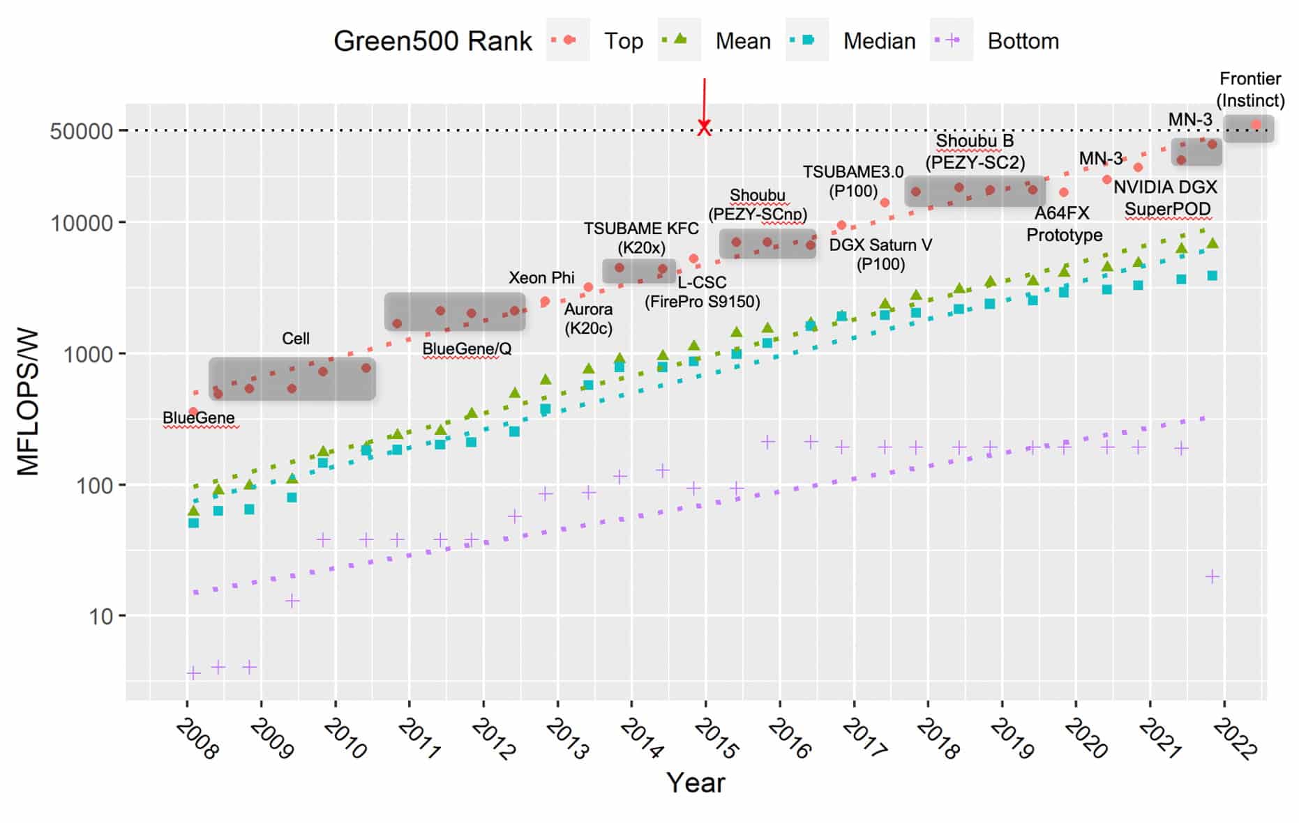 By some measures, the results showed the energy efficiency of the world’s greenest systems increased two orders of magnitude in the last 14 years.