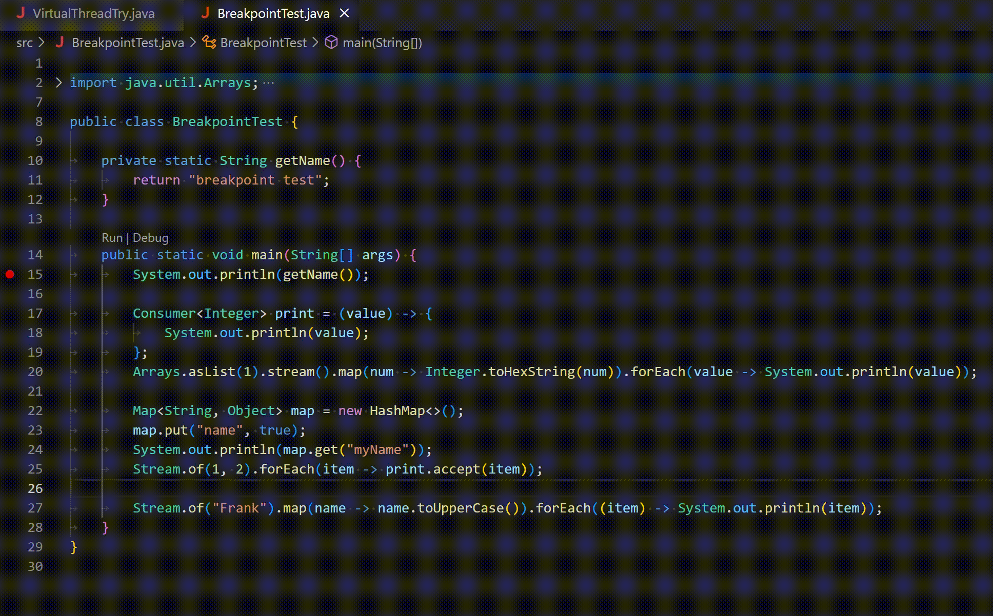 Java 19 brings the first preview of virtual threads to the Java platform; This is the primary deliverable of Project Loom. Virtual threads are designed to significantly boost the scalability of concurrent Java programming while making little change to the current API. In our September release, we have enabled the support for virtual threads in our Java debugger. Note that you will need to install JDK 19 to use this feature. Here’s a screenshot of our debugger in action.