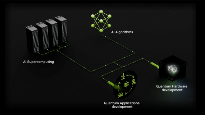 This democratization of workflows and development of a robust and performant software stack is exactly what enabled GPUs to revolutionize supercomputing. Building from the same framework that made accelerated computing successful is critical for quantum computers to evolve from research projects to enablers of science. This idea is called quantum accelerated supercomputing.